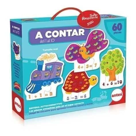 60 piezas con sistema autocorrectivo, las piezas encastran solo en el lugar correcto. Juego de encastre para aprender a contar, sumar y restar.