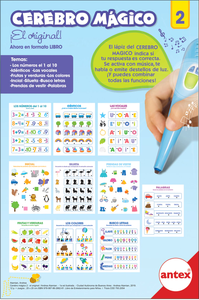 El libro del cerebro magico, con mas de 190 opciones para descubrir. Encuentra las respuestas correctas con el lapiz electronico con luz y sonido.