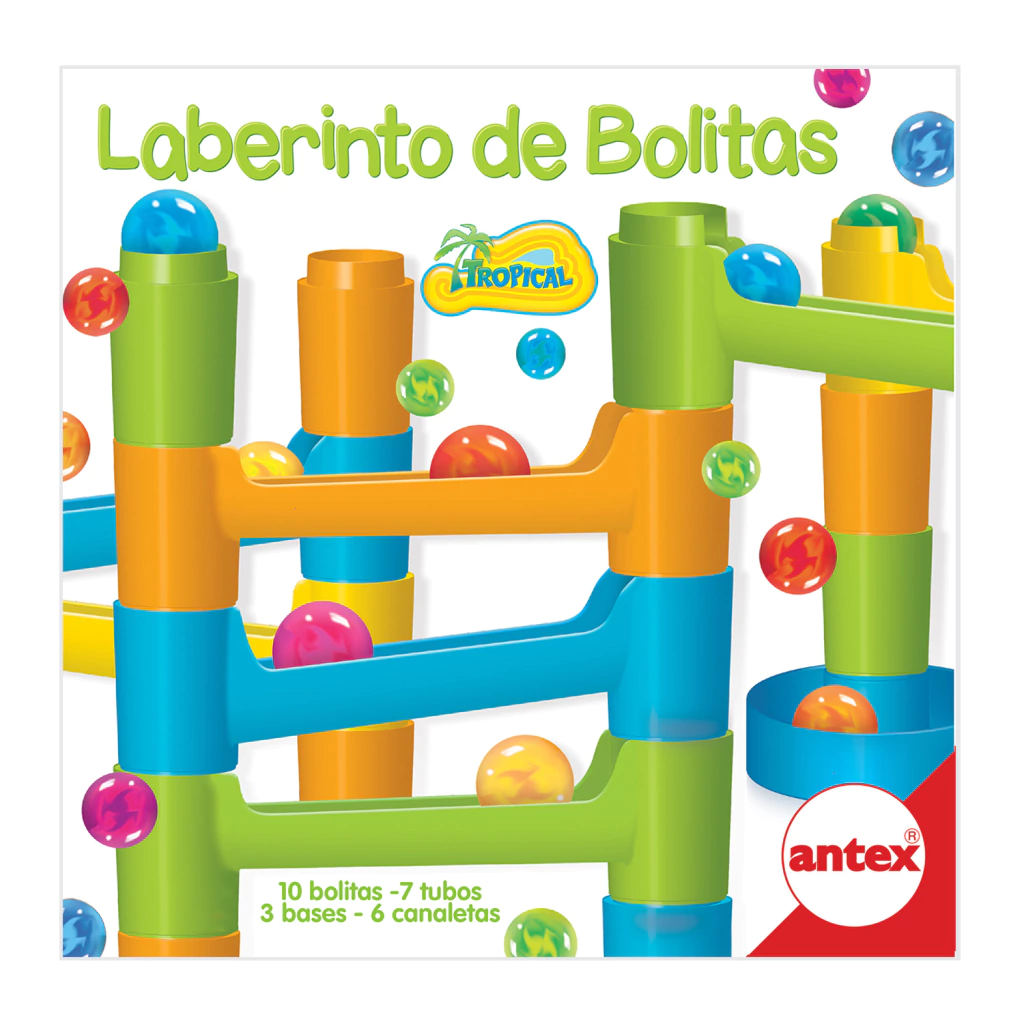 Contenido: 10 bolitas, 6 canaletas, 7 tubos y 3 bases.
