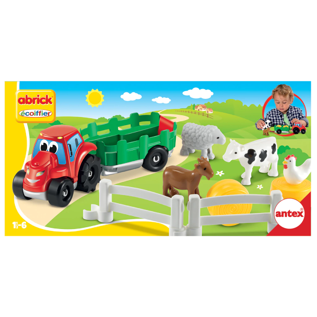 Abrick-Tractor con vaca Incluye tractor con acoplado y 4 animales.